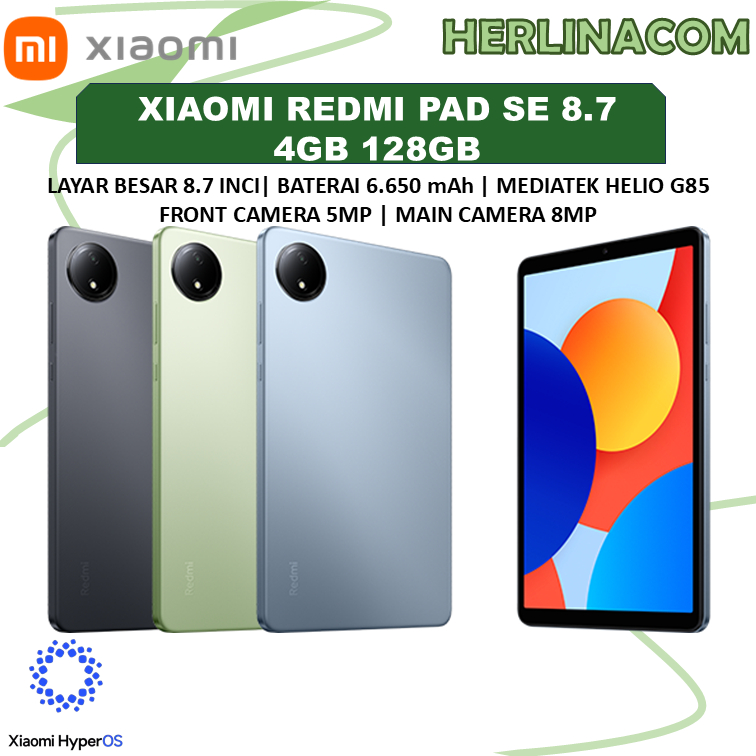 Xiaomi Redmi Pad SE 8.7 Inch 4GB 128GB 90HZ Wi-Fi 5 | Processor MediaTek Helio G85 | Xiaomi HyperOS | Baterai 6650mAh