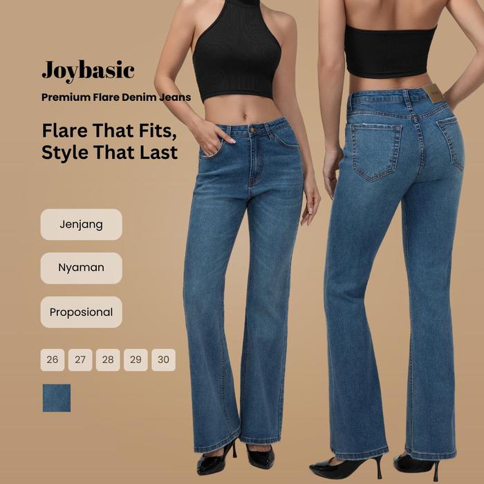 Joybasic Premium Flare Denim Jeans - Blue, 26