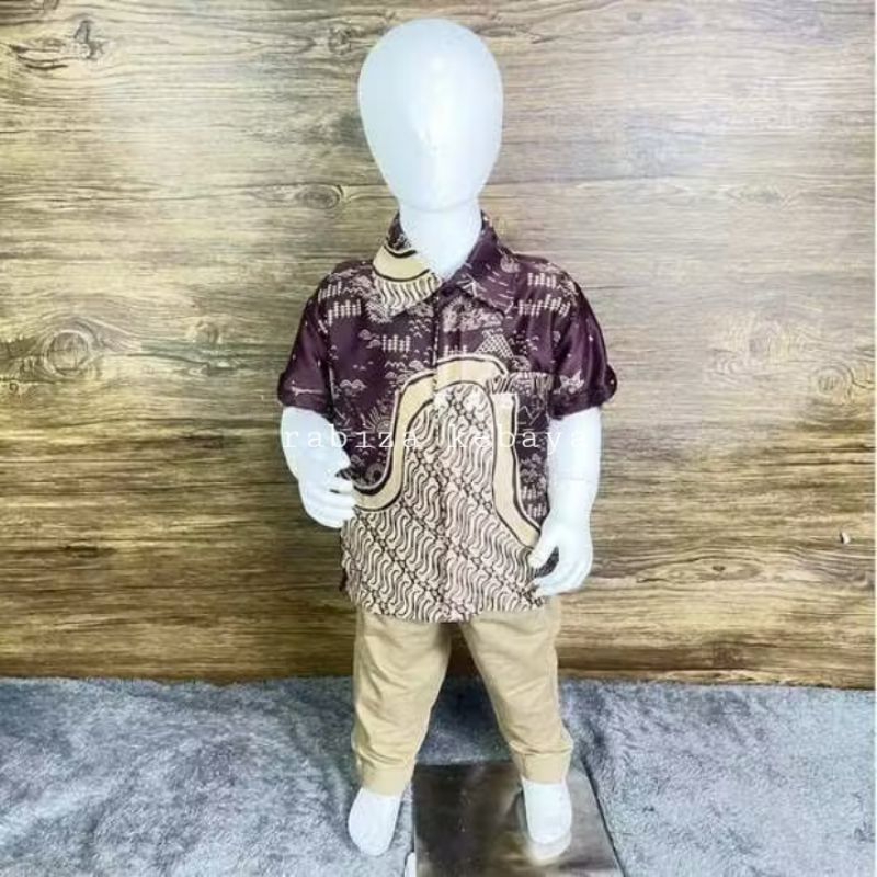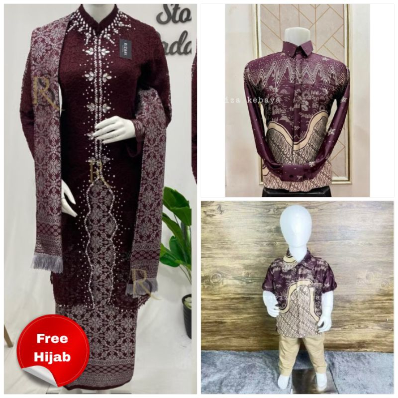 Stelan Kebaya Brokat Modern Couple Kemeja Warna Burgundy Terbaru Batik Dewasa Anak Pesta Kekinian Mewah Elegan Kondangan Hajat Seragam