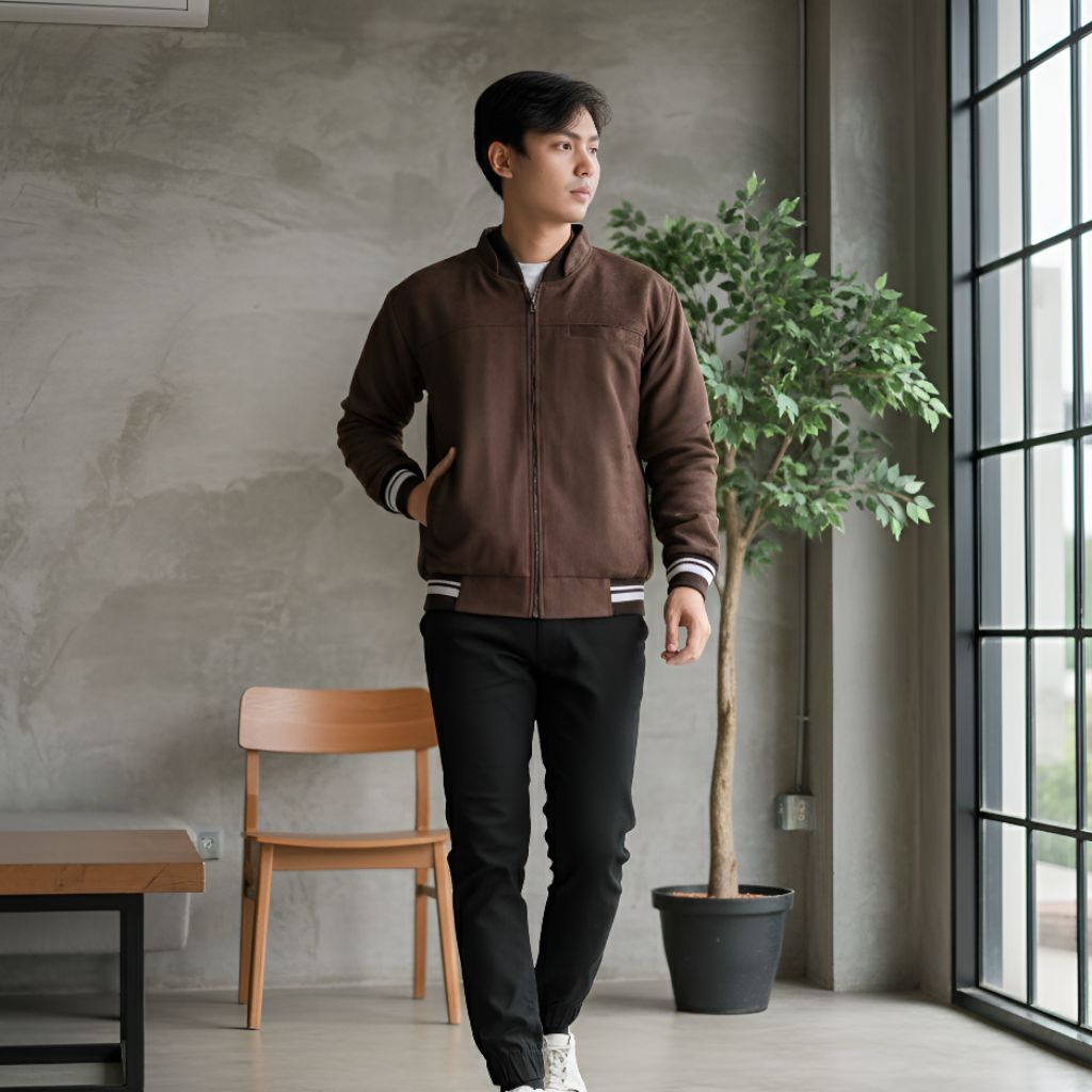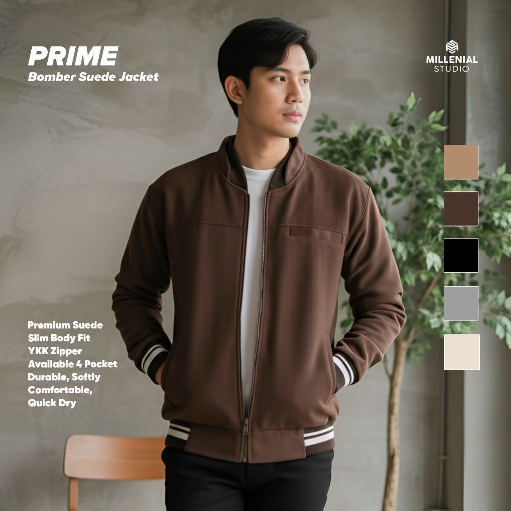 Millenial X Bapin Jaket Bomber Suede Polos Premium Prime | Jaket Pria Tebal | Bomber Jacket Casual
