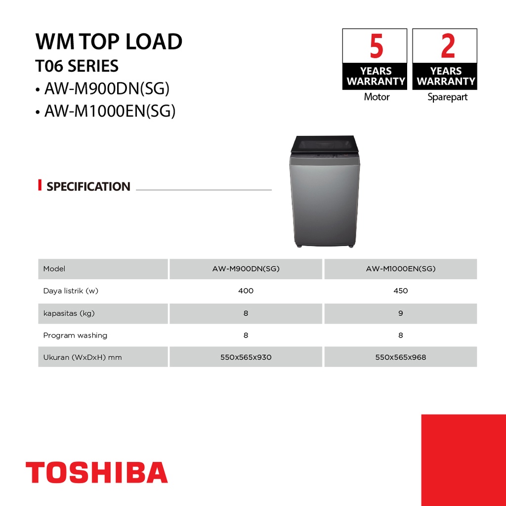 TOSHIBA Mesin Cuci Top Loading 8kg Model AWM900DNSG Bukaan Atas1 Tabung
