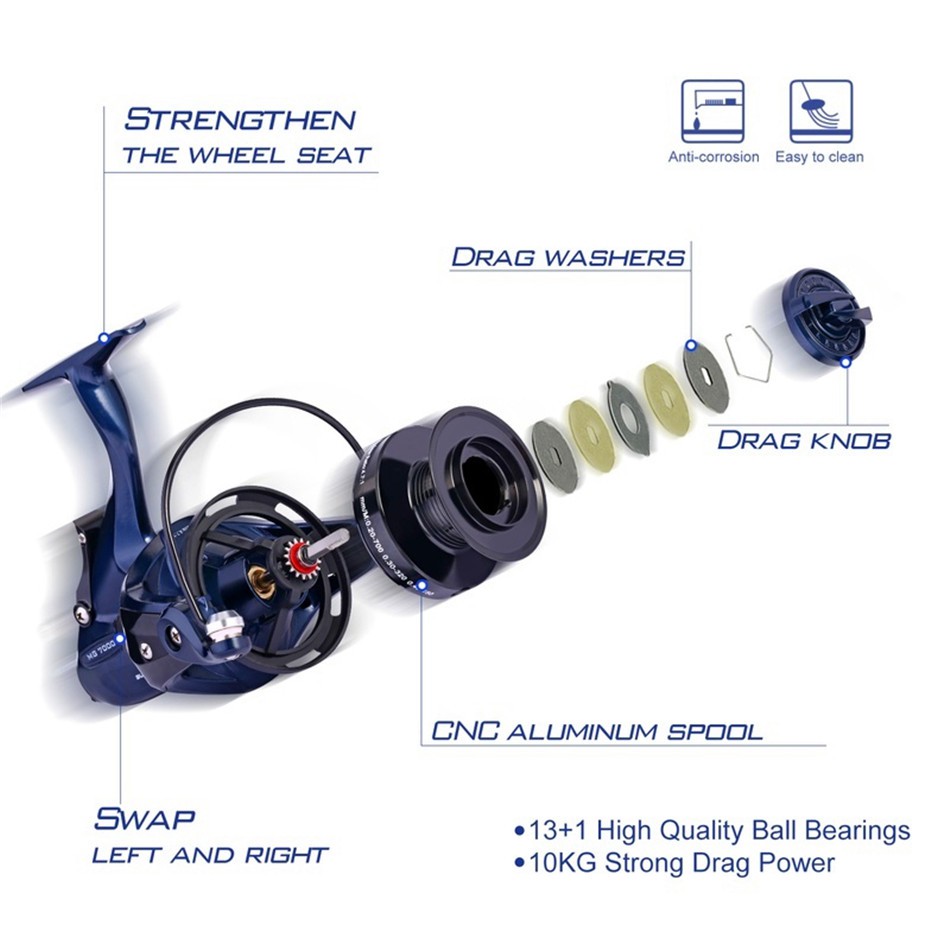 Sougayilang Baru 7000Series Pemintalan Memancing Gulungan 13 + 1BB Pemintalan Memancing Reel Pancing Bass Trout Carp Fishing Wheel Max Drag 12Kg