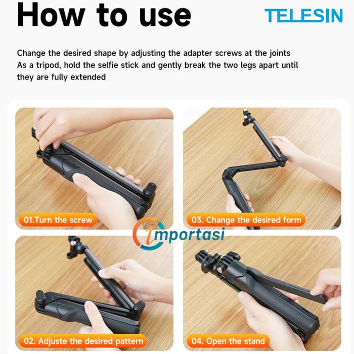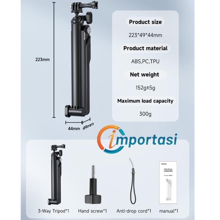 TELESIN MULTI MOUNT 3 WAY TRIPOD TONGSIS GOPRO 13 12 11 10 9 INSTA360 ACE PRO X4 DJI ACTION 5 4 3