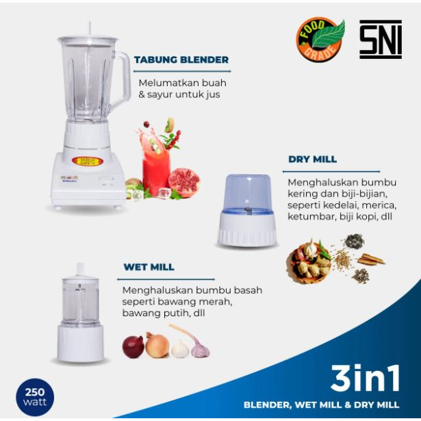 Blender Miyako Bl-102 Pl 3 In 1 Dengan Wadah Plastik 1L, Motor Kuat 250W, Garansi 1 Tahun