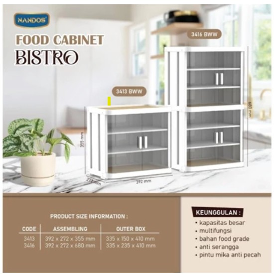 Nandos 3416 / 3413 BWW - Food Cabinet Bistro / Rak Kosmetik / Rak Dapur / Cabinet / Lemari Serguna / Multifungsi / Rak Kosmetik Minimalis