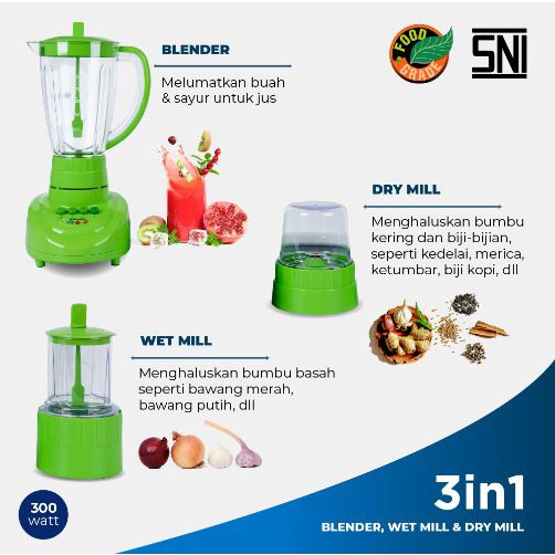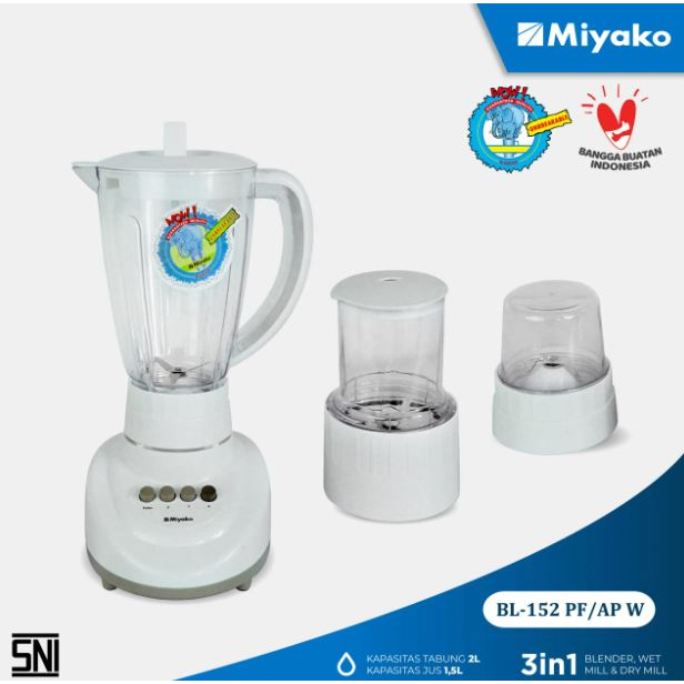 Blender Miyako Bl-152 Pf-Ap 3 In 1 Dengan Wadah Plastik 1.5 Liter Garansi 1 Tahun