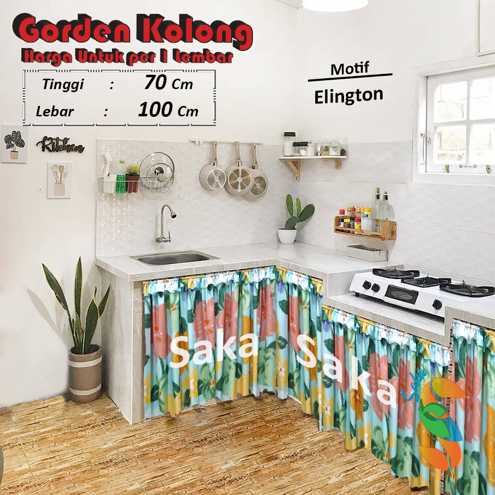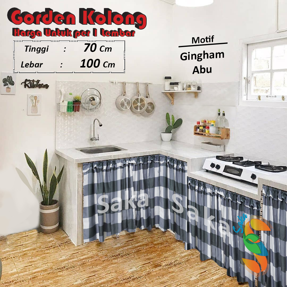 Gorden Kolong Dapur Minimalis Uk 100 x 70 cm + Bonus Tali Motif Kotak Kotak Polos Dan Minimalis