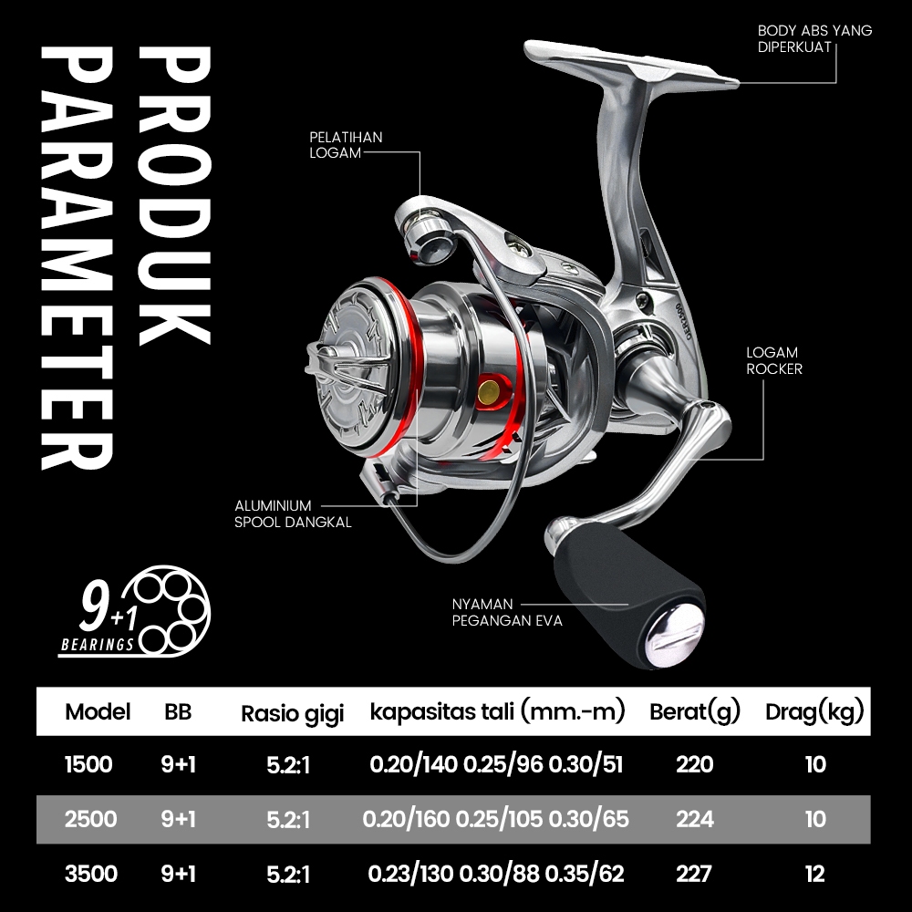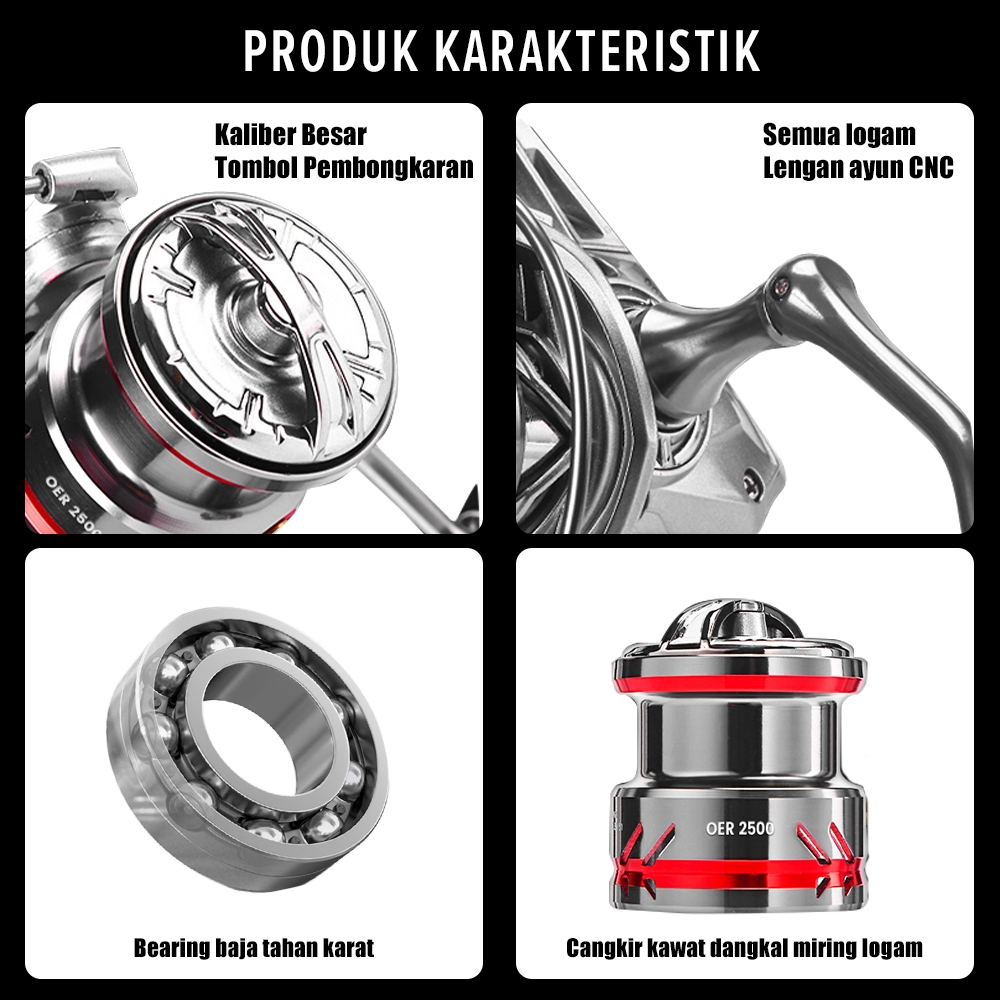OFFICIALSEAHUNTER OER POWER HANDLE Reel Pancing Spinning Reel Gulungan Pancing, Aluminum Shallow Spool, Max Darg 10-12KG, 1500 2500 3500 Series, 9+1BB