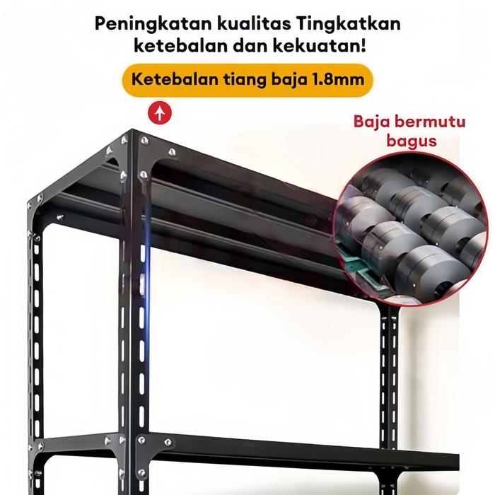 AK RAK SUSUN BESI SIKU 5 SUSUN ANTI KARAT BAJA CARBON TEBAL 1.5MM KAPASITAS BESAR DESAIN SNAP-ON STRUKTUR TERBUKA MULTI-