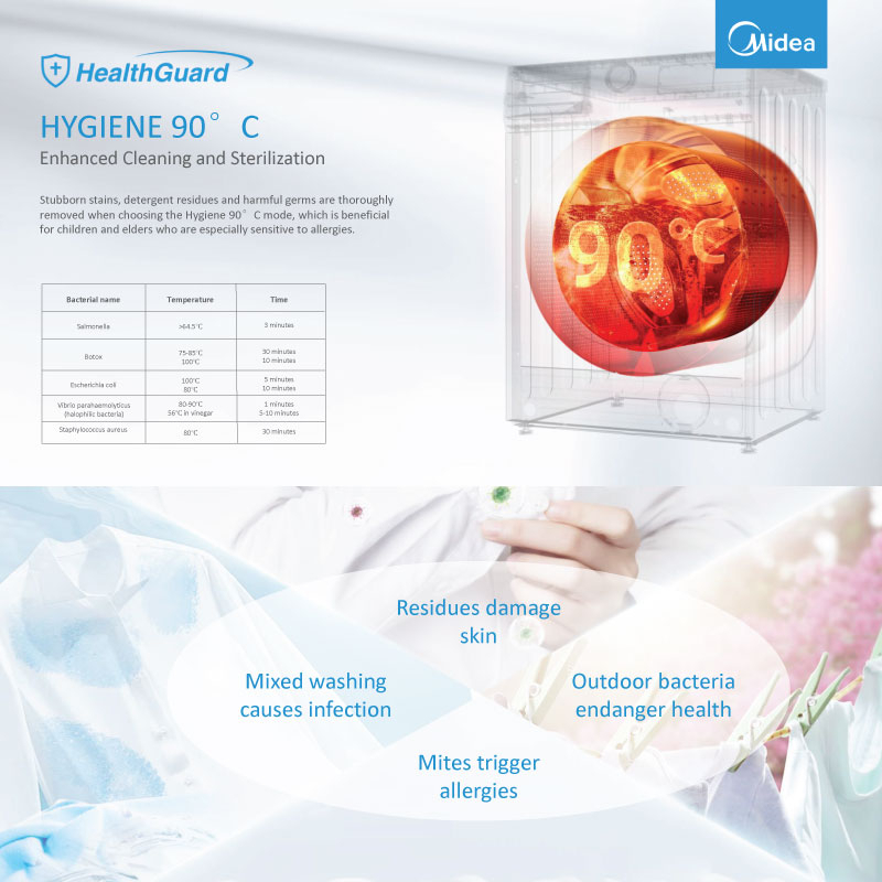 Midea Mesin Cuci Front Loading Kapasitas 9,5 kg Model MF100W95BN Bukaan Depan