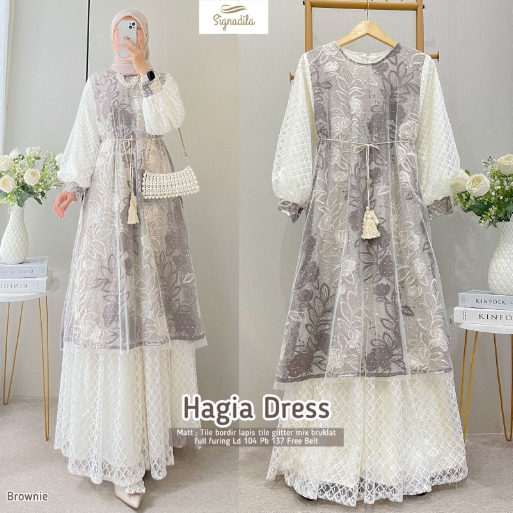 Hagia Dress Gamis Tille Bruklat Gamis Bruklat Tile Tebal Super Premium Free Ikat Pinggang Premium Kancing Gamis Tille Wh