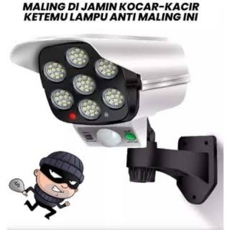 Lampu Solar Sorot 77 Led Tenaga Surya Anti Air Sensor Gerak Remote Model Fake Cctv