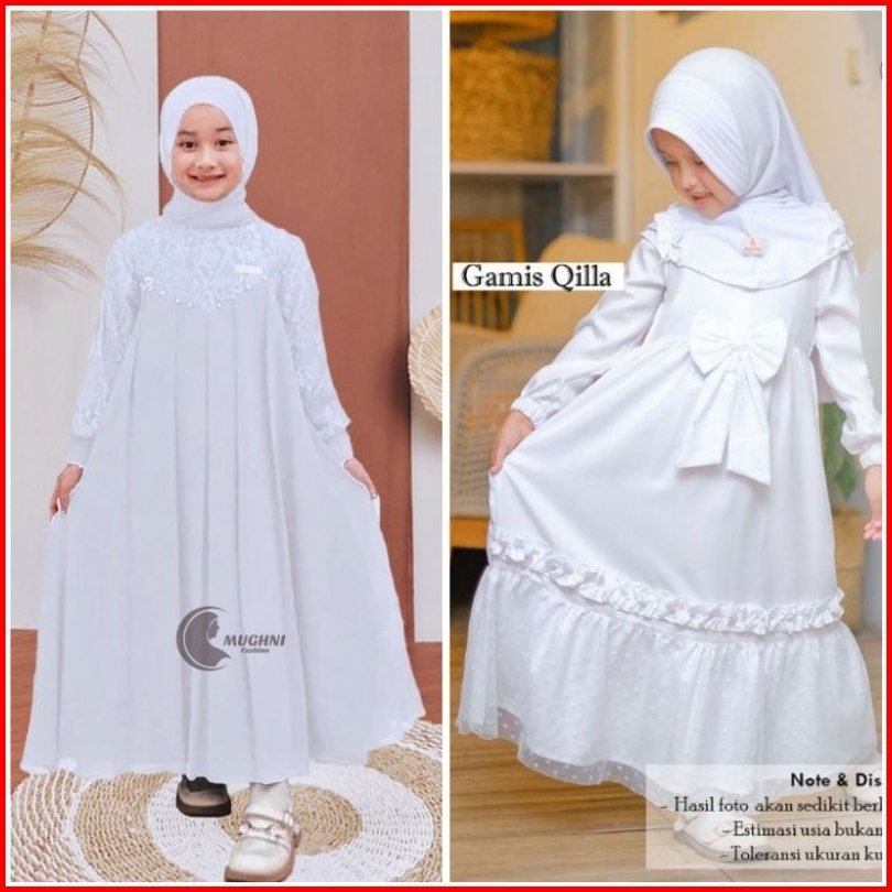 Khalesya Set Gamis Anak Putih 1-13 Tahun Gamis Anak Perempuan Manasik Haji Gamis Syar I Anak