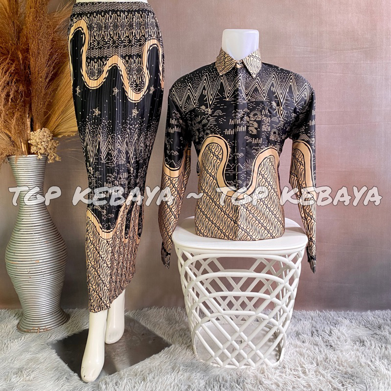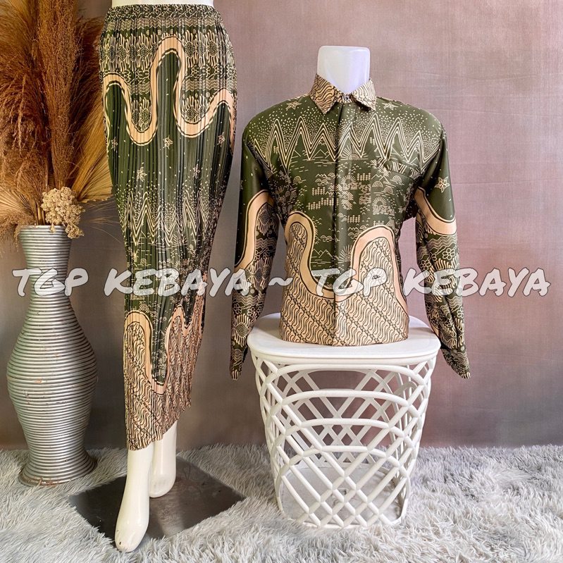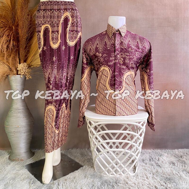 TGP Kebaya - Set Batik Couple Mewah Lamaran Batik Couple Set Rok Plisket Baju Batik Kemeja Lengan Panjang Batik Couple Kondangan Keluarga Baju Batik Seragam