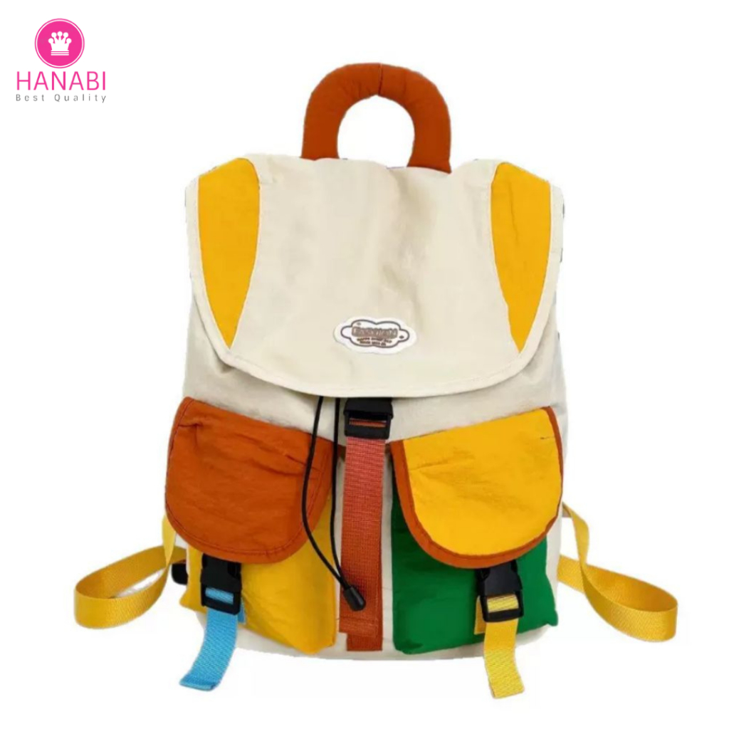 Hanabi - Tas Ransel Anak Nylon Colour Full Serut Besar Premium Tas Laki-Laki Perempuan Tas Sekolah Tas Traveling