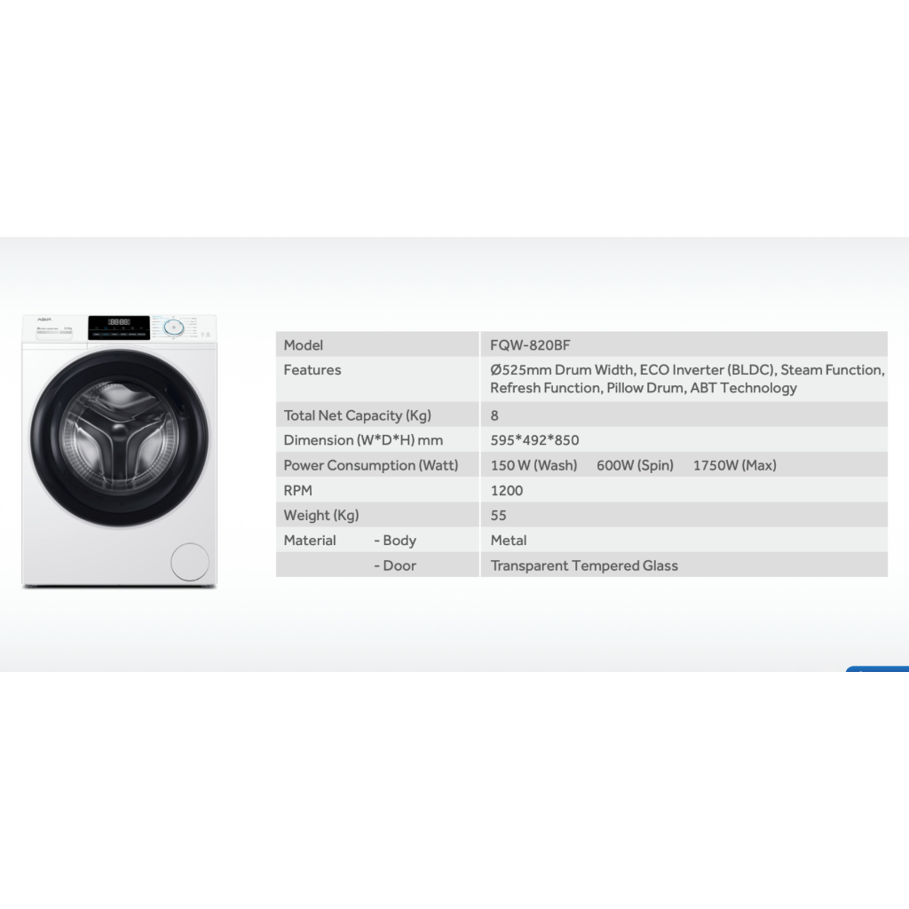 MESIN CUCI FRONT LOADING AQUA JAPAN FQW 850900QD PFL 1105 SFL 1150 FB 1208 S6W FRONT LOADING 8KG HARGA MURAH DAN TERJANGKAU