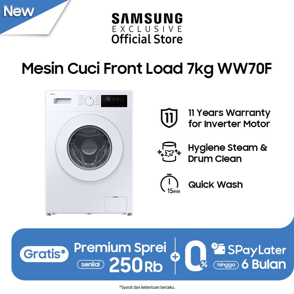 Samsung Mesin Cuci Front Load 7Kg Hygiene Steam Drum Clean WW70FG3M05TWSE