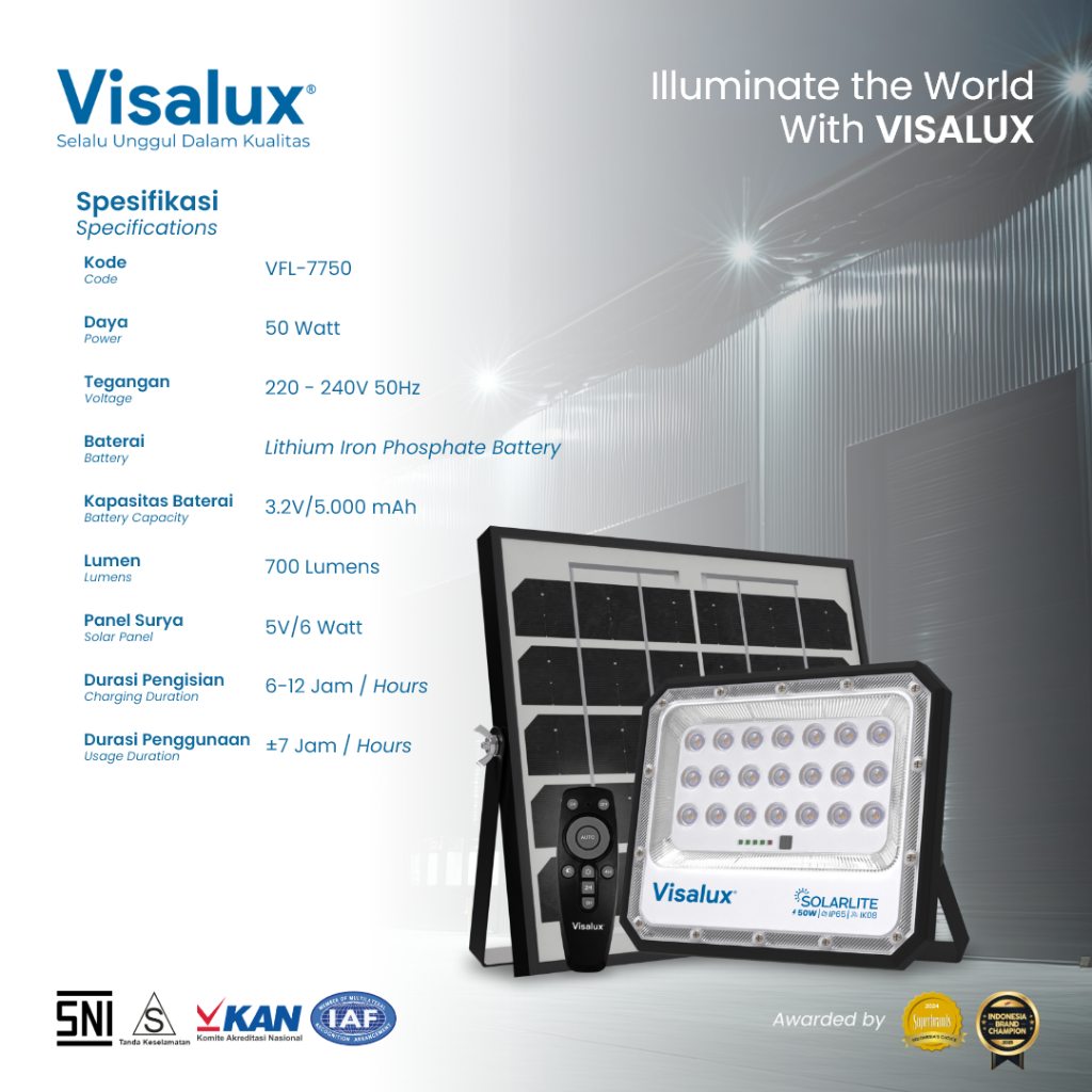 Visalux Flood Light Solarlite 50W - Lampu Sorot Remote Energi Surya Sensor Cahaya Putih (Slt-Vfl7750Dl)