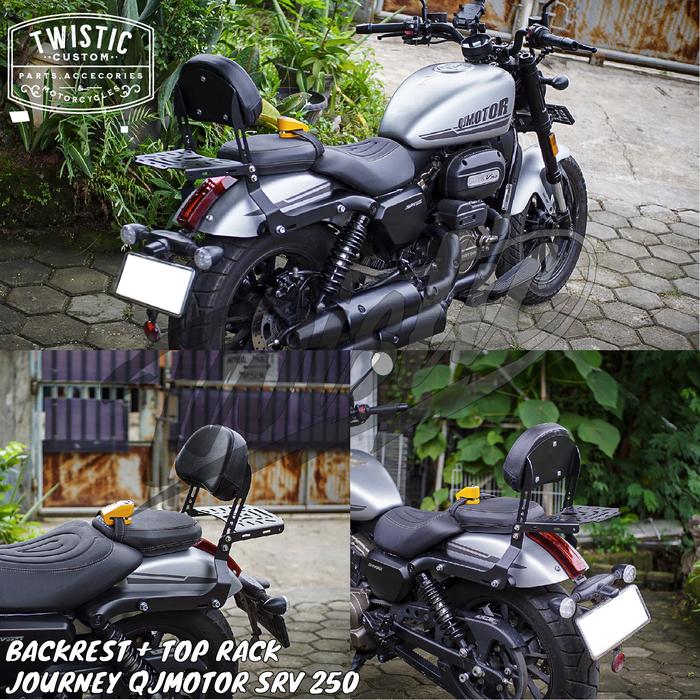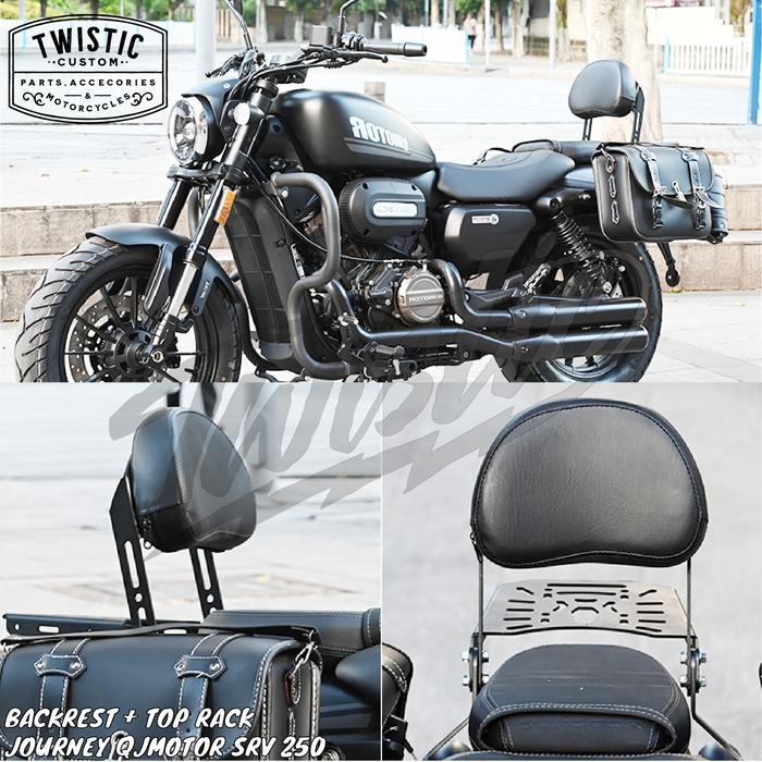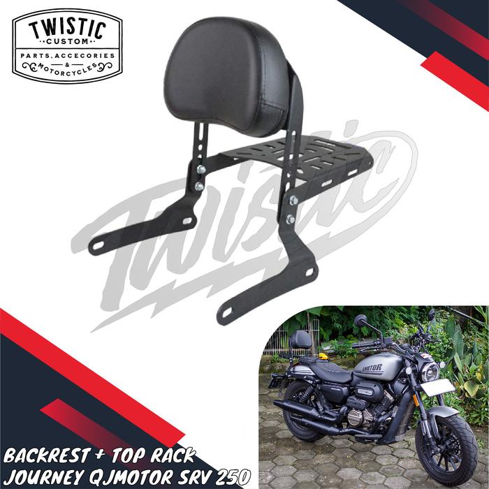 BACKREST + T0P RACK JOURNEY BRACKET BOX TAS BARANG SANDARAN JOK PENUMPANG BONCENGER BELAKANG ATAS TOURING MOTOR QJMOTOR SRV 250 SRV250
