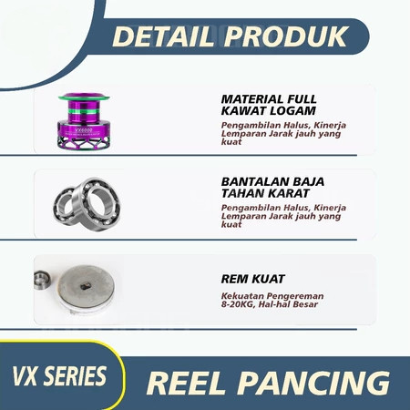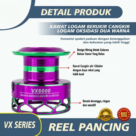 SUBOGDG - Reel Pancing VX1000-7000 Drag 30KG - Warna Chameleon Metalik - Reel Laut 14 Bearing High Speed 5.2:1 - Gulungan Pancing Berkualitas Premium
