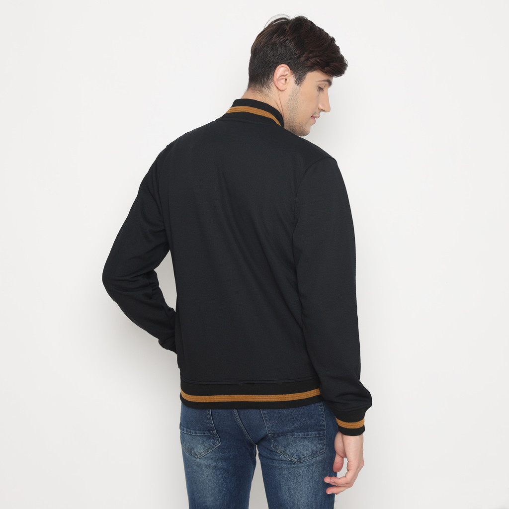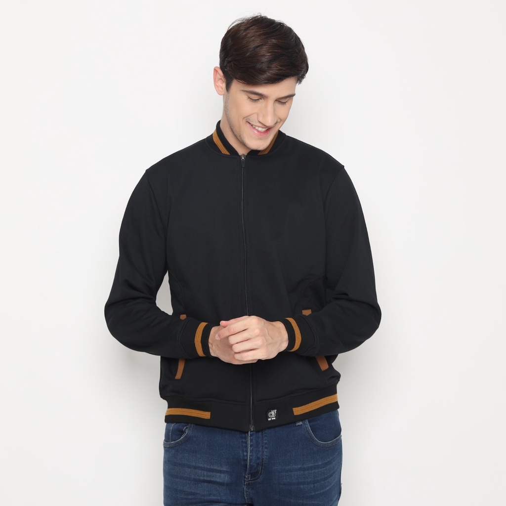 D&F Cvc Jaket Bomber Pria Cut & Sewn - Hitam List Coklat