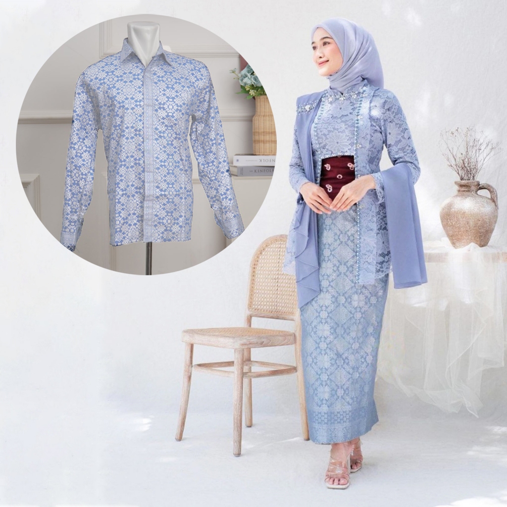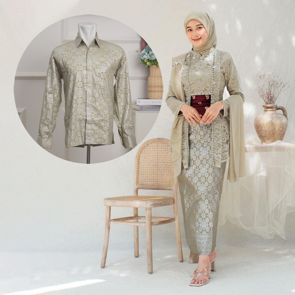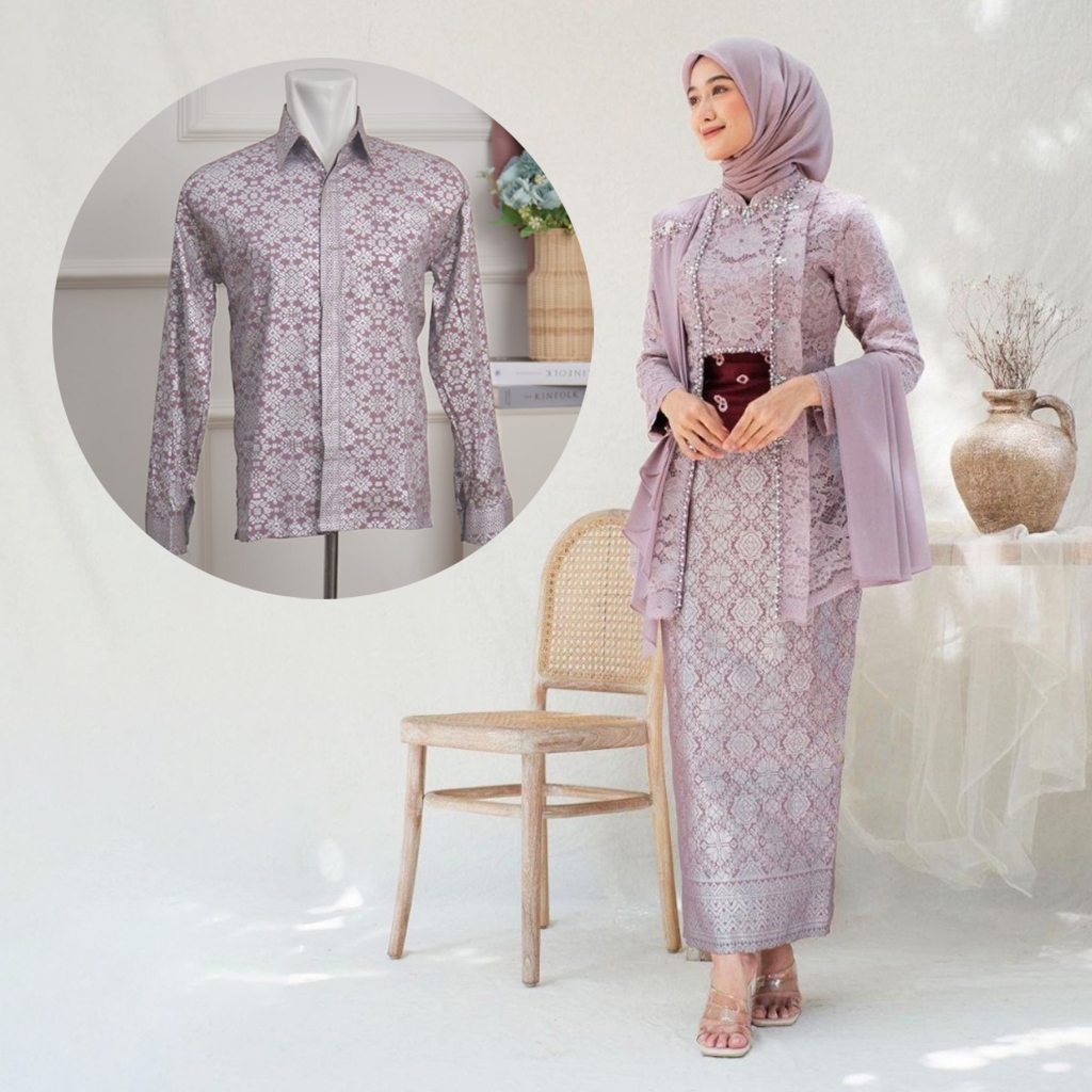 NEW ARRIVAL - Couple Kebaya Laksmi Kutubaru Modern Brukat Ready - Baju Pasangan Tunangan Lamaran Kekinian - Kebaya Wisuda Couple Baju Pesta Kondangan Kemeja Pria Lengan Panjang