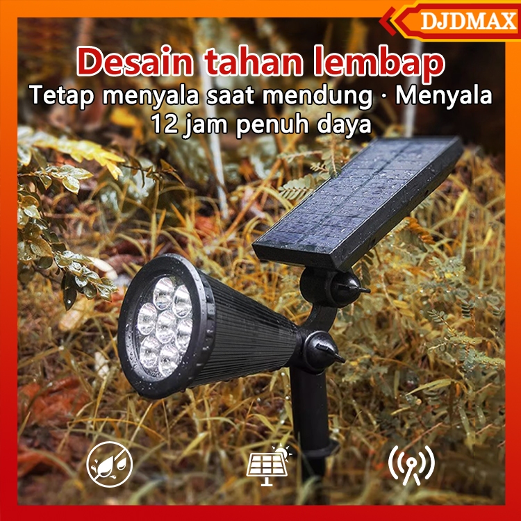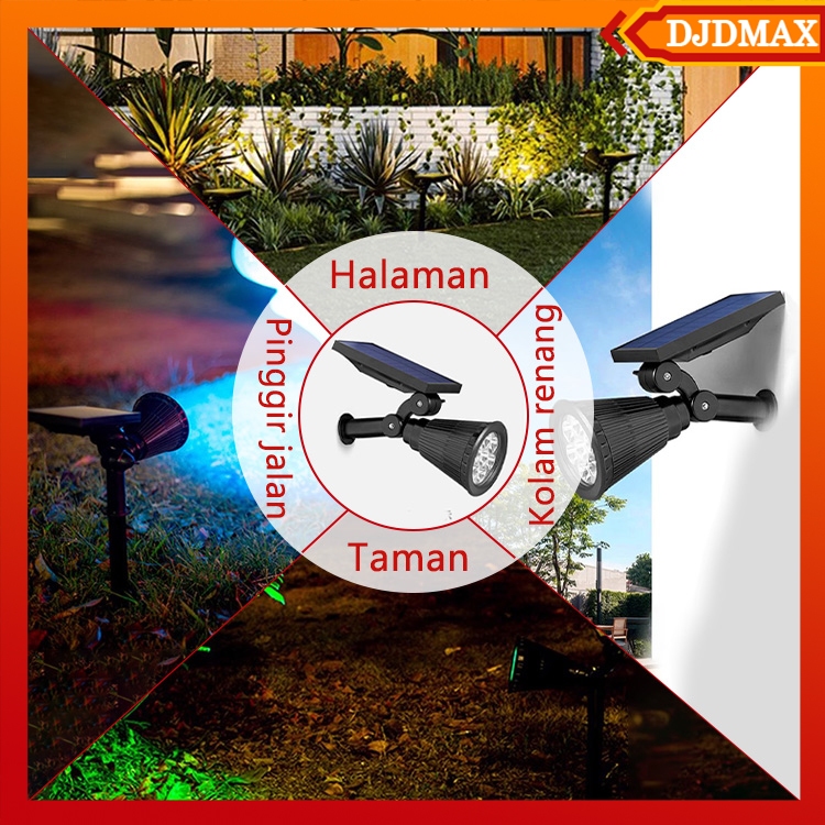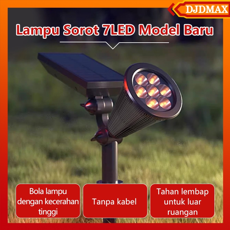 Djdmax Lampu Sorot Tenaga Surya 7 Led Outdoor, Ip65 Waterproof, Pilihan Warna Putih / Warm / Rgb, Solar Spotlight Otomat