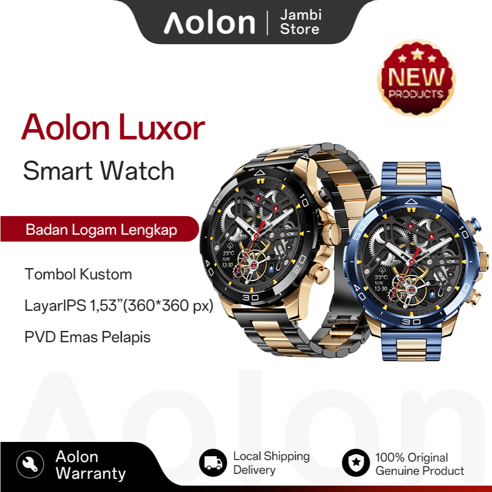 [New]Aolon Luxor Jam Tangan Smartwatch Tombol Kustom Semua Logam 48mm Layar IPS Detak Jantung 24H Telepon Bluetooth Olah