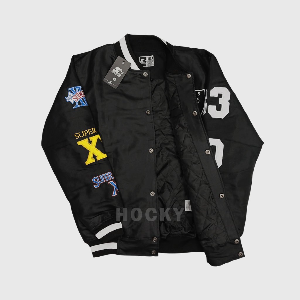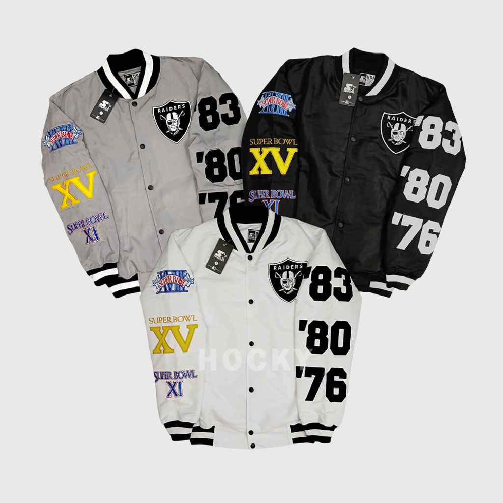 Hocky -Jaket Varsity Bomber Raiders Hitam Vintage Baseball Pria Wanita Bordir Terbaru Premium Distro