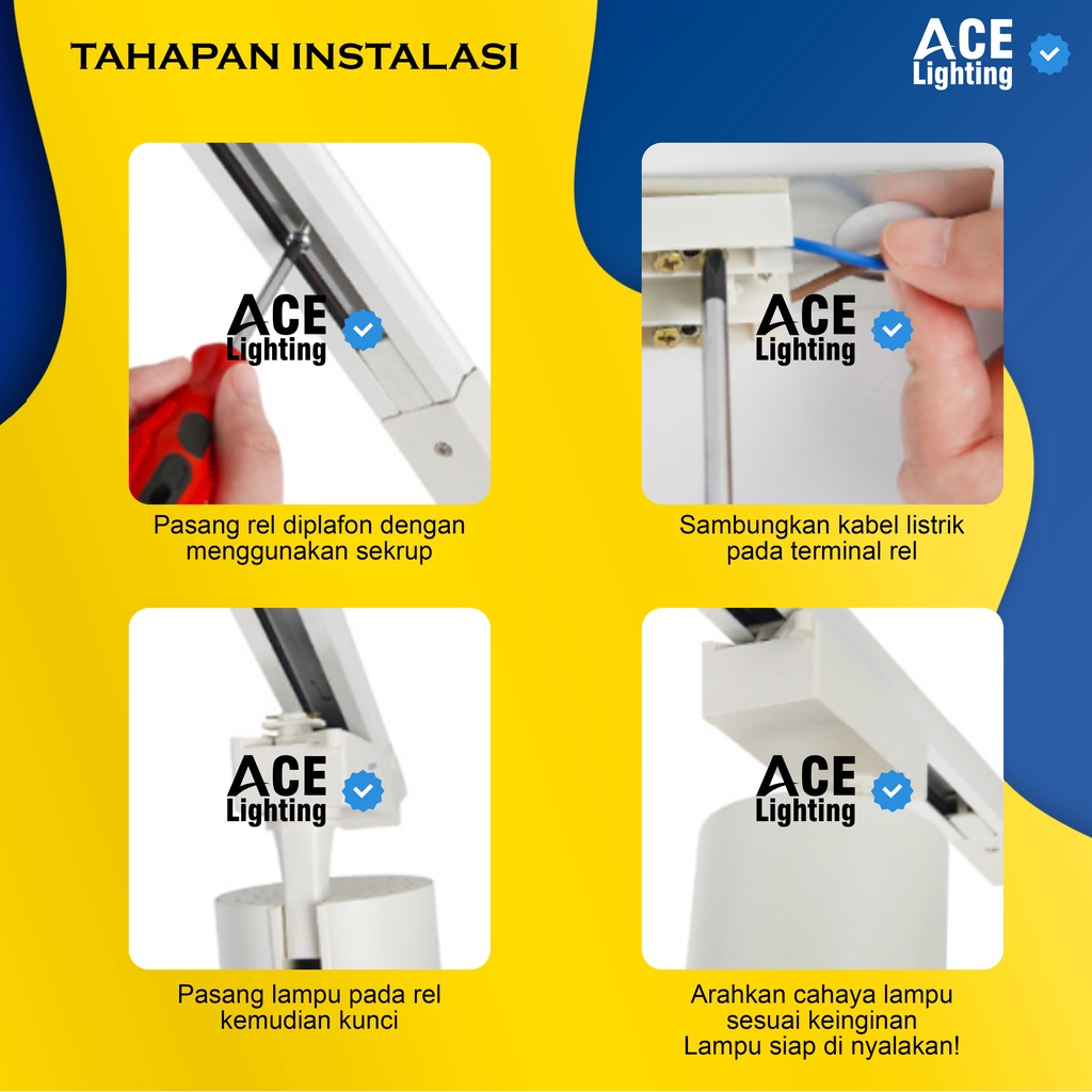 Paket Lampu Sorot Rel 1 Set Isi 3 Spotlight Track Light Rell E27