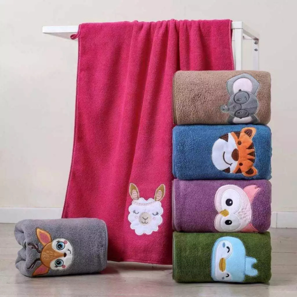 Handuk Mandi Anak Bayi Motif Karakter Boneka Timbul 3D Bahan Microfiber Premium 50x100