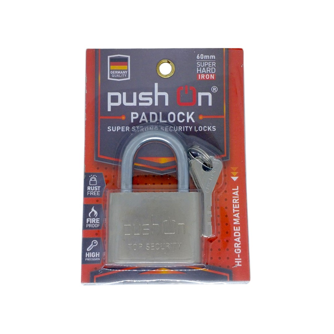 Gembok Stainless Push ON 60mm Leher Pendek Besi Baja Merk Kunci Pagar Gudang Mobil Truk Pintu