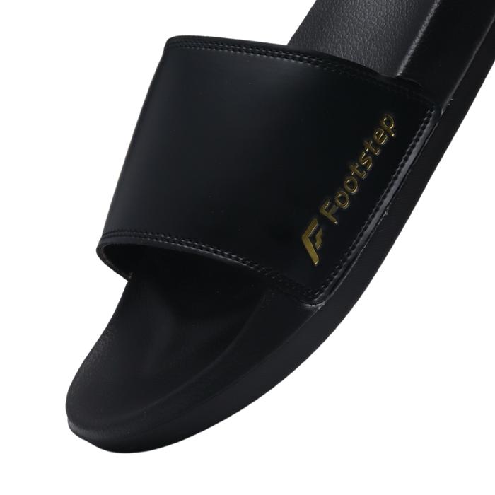 SENDAL COWOK FOOTSTEP PORTO BLACK SLIDE SANDAL SHOES PRIA SELOP KARET - HITAM, 39