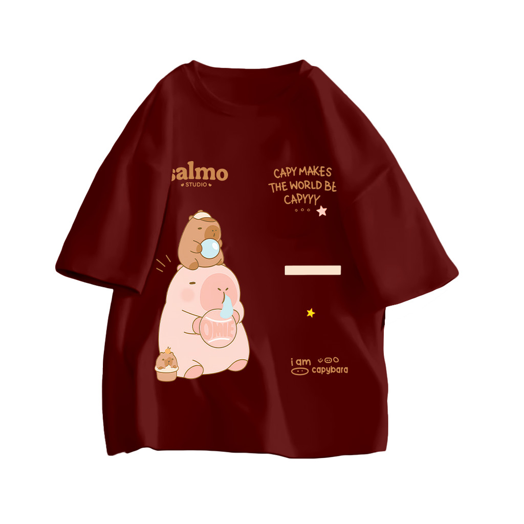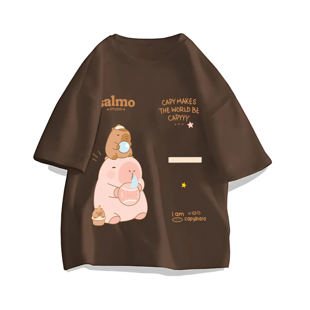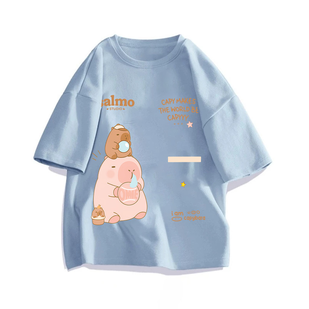 T-Shirt Lengan Pendek Baju Kaos Oversize Wanita | Motif Capybara Lucu| Korean Style Baju 100 PERSEN Cotton