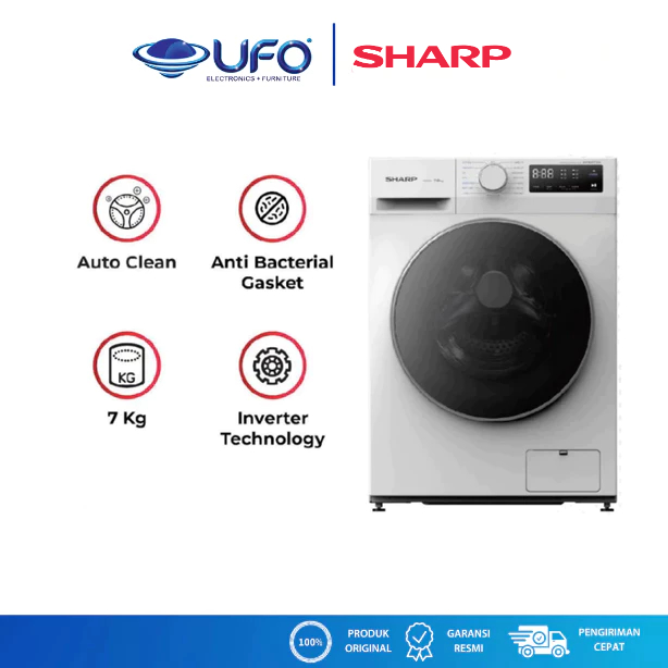 Sharp Mesin Cuci 1 Tabung Front Loading 7 Kg ESFL1270MWX