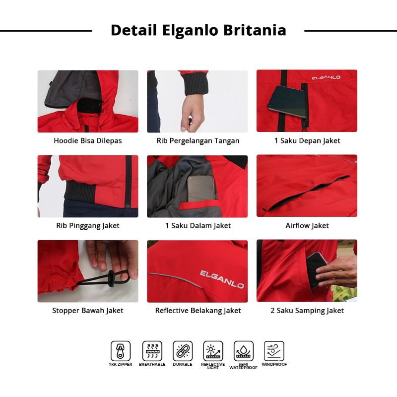 Elganlo Jaket Bomber Parasut Harian Motor Outdoor Waterproof Red Britania Unisex