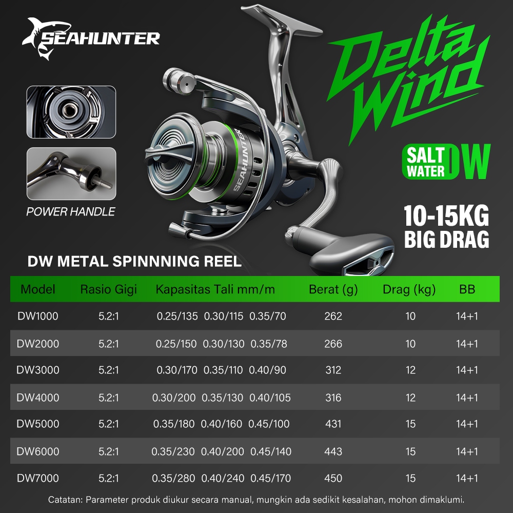 OFFICIAL SEASIR DW 1000-7000 Reel Pancing Full Besi air laut/Tawar Reel Spinning Gulungan Pancing Putar dengan 14+1 Bantalan Bola, Semua Logam, Spool