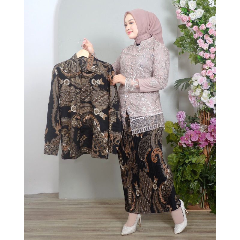 Couple Kebaya Remaja Sarita Tulle Modern / Kebaya Lamaran / Hem Batik Pria / Kebaya Pesta