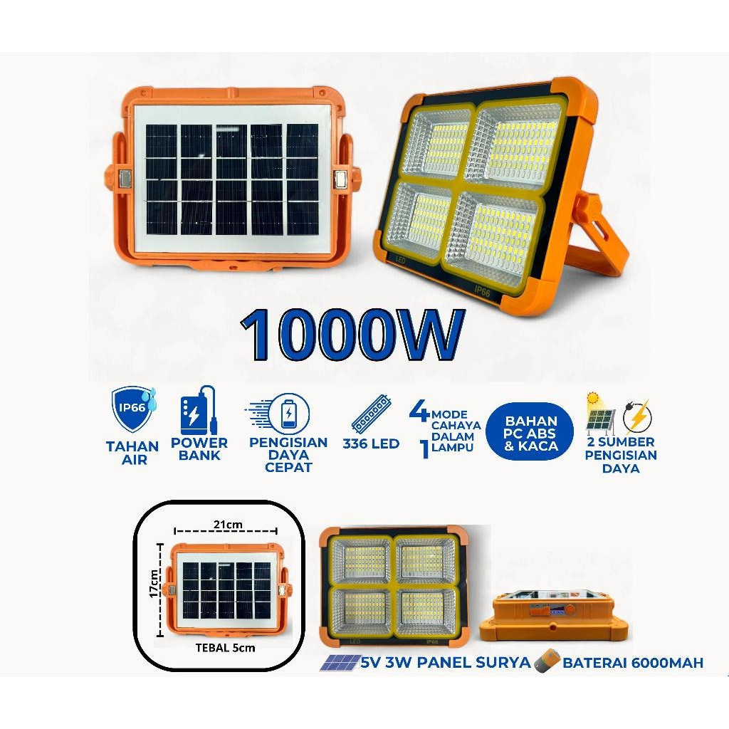 Lampu Tenaga Surya Solar Cell Panel Lampu Sorot 1000W 2000W Lampu Outdoor Flood Light Lampu Camping