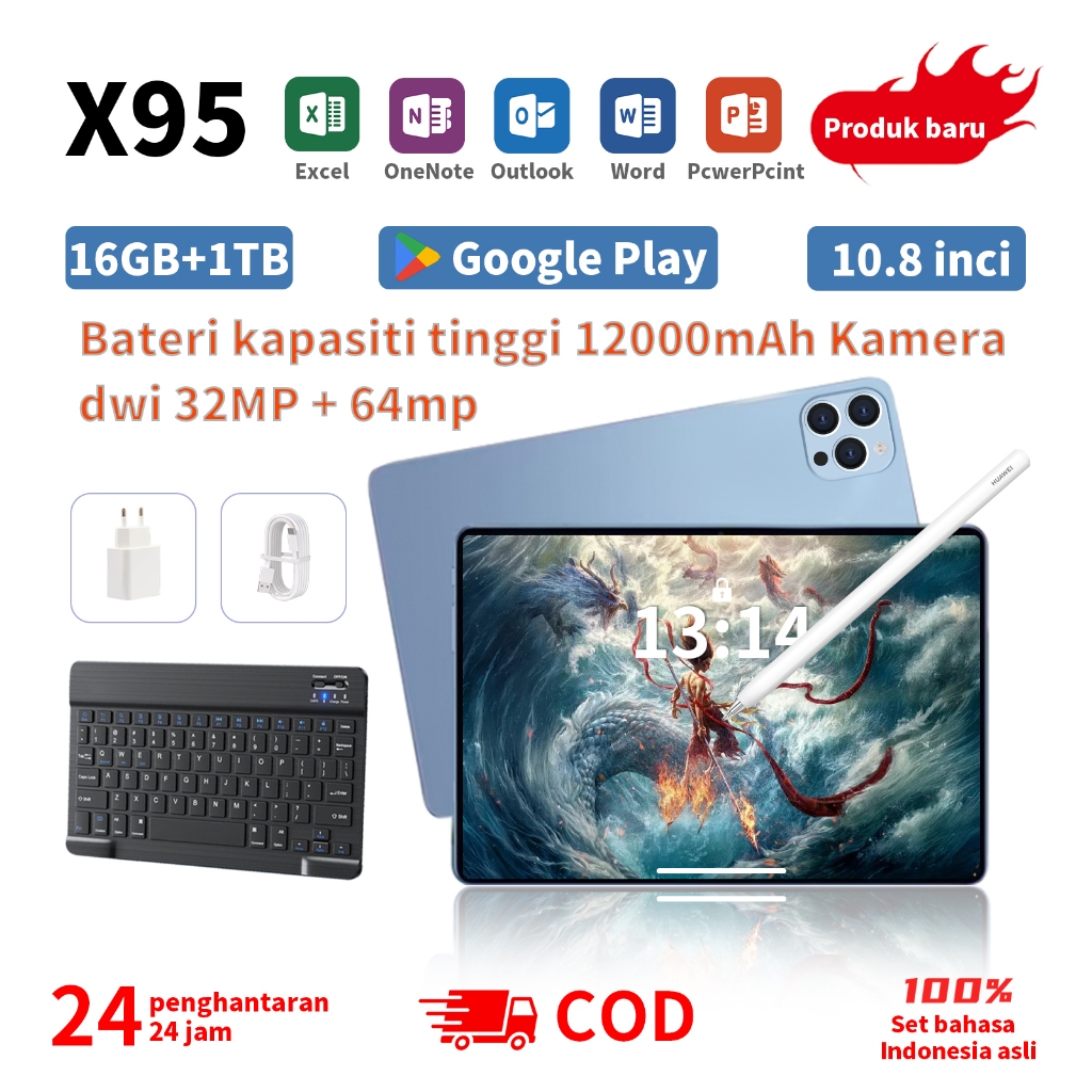 Tablet X95 Pro 10,8 inch 16GB + 1TB Tablet Pintar Tablet Android Mendukung Kartu SIM Gratis 9 Hadiah Gratis Tablet Pembe