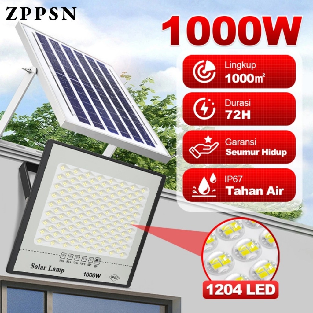 Zppsn 6500W Lampu Tenaga Surya Light Ip67 Waterproof Lampu Sorot Solar Outdoor Pencahayaan