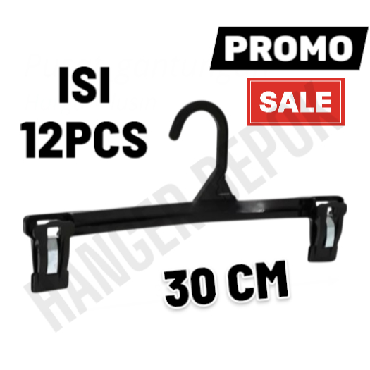 GANTUNGAN HANGER JEPIT CELANA HANGER JEPIT PLASTIK HITAM JUAL PER 12PCS