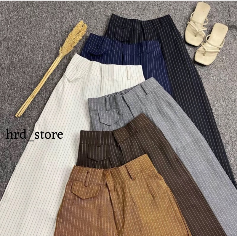 Oro Pants Stripe Bangkok High Waist Jumbo Korean Style Katun Semi Woll M L Xl Xxl