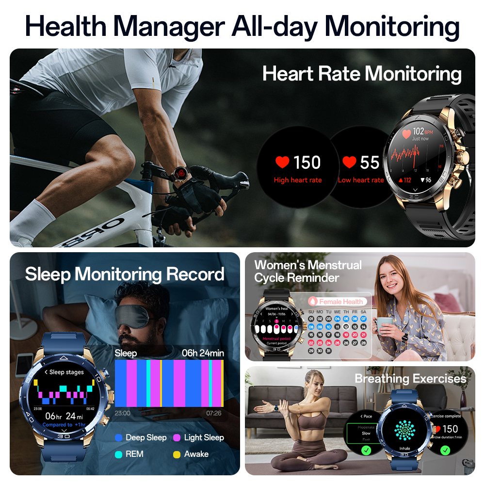 Aolon Luxor Jam Tangan Smartwatch Tombol Kustom 48mm Layar IPS Detak Jantung 24H Telepon Bluetooth Olahraga 100+ Logam S