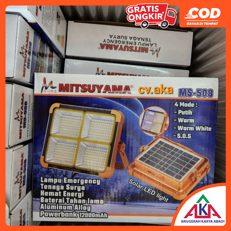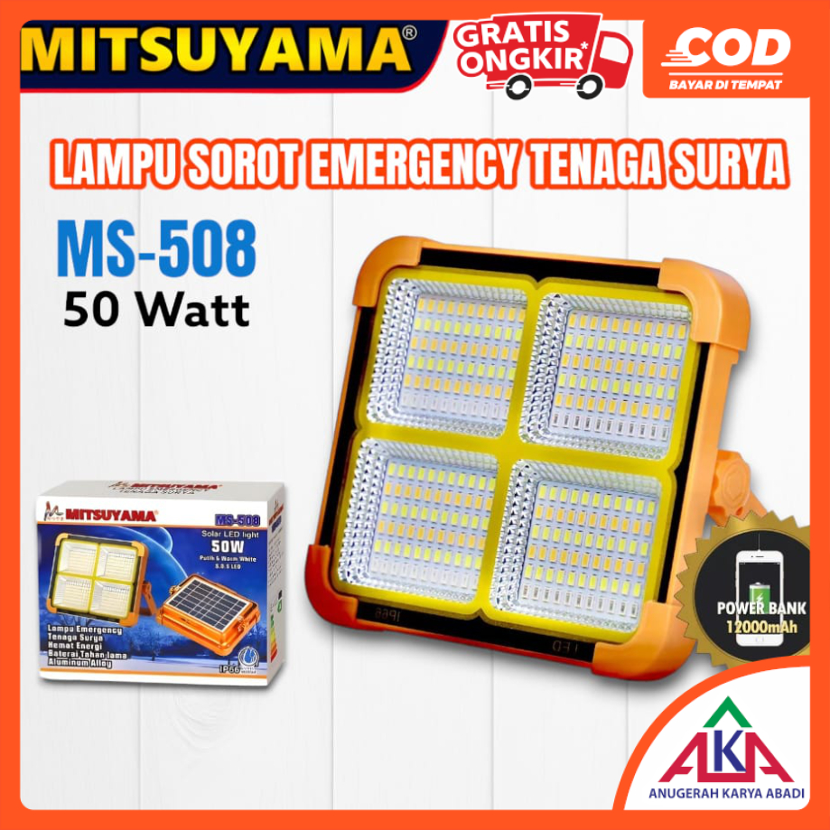 Mitsuyama Ms-508 Lampu Sorot Tembak Emergency Led 50W Powerbank 12000Mah Solar Cell Waterproof