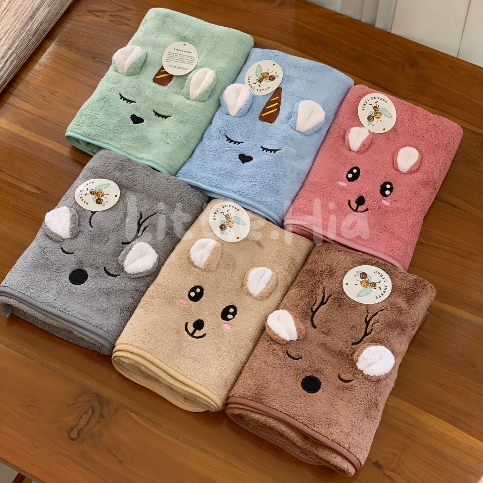 Handuk Mandi Bayi Microfiber Animal Motif Timbul 50x100(1 Pcs)