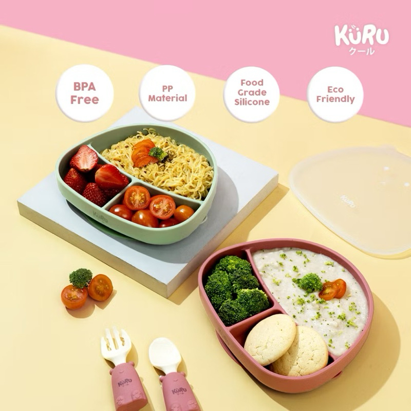 KURU Baby Silicone Suction Plate Set | Piring Makan Bayi Anak | Kotak Makan Bayi | Lunch Box