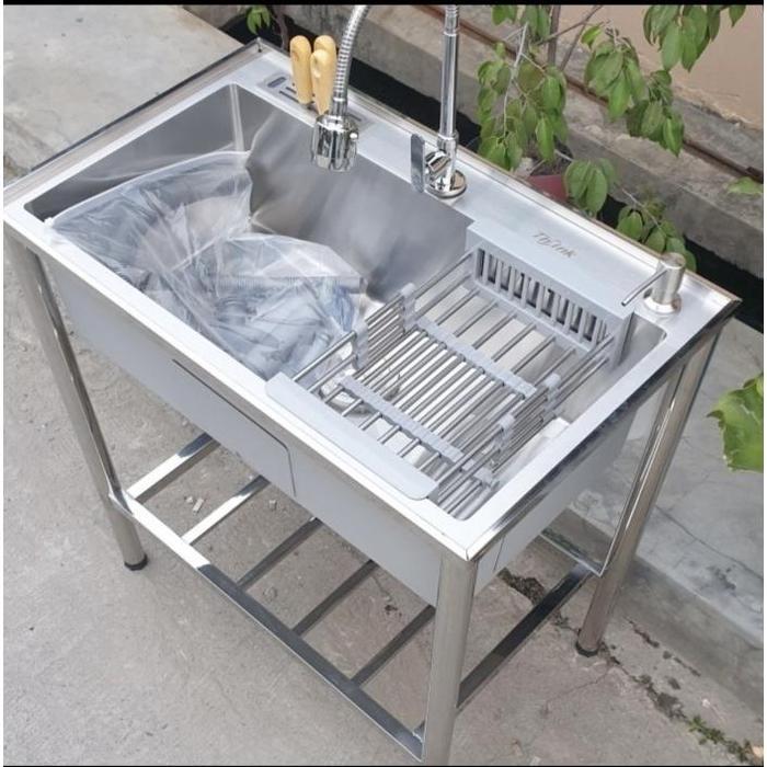Bak cuci piring portable set stainless sus 304 kitchen sink meja 75x45 - FULLSET 8050