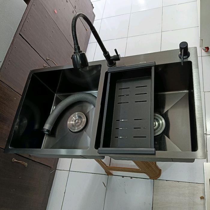 Kitchen Sink Black 8245 Bak Cuci Piring Hitam 2 Lubang Stainles Kran - BODY ONLY