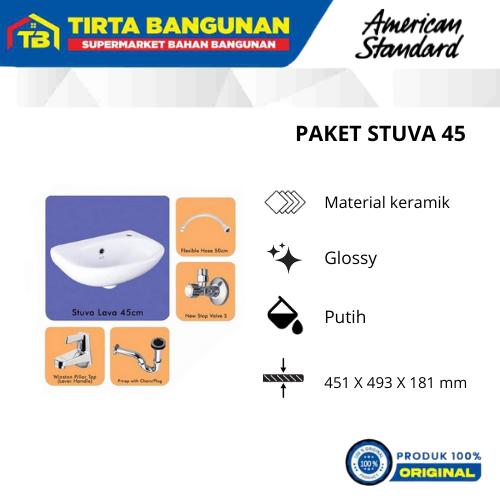 AMERICAN STANDARD PAKET STUVA 45 WASTAFEL STUDIO 45 KOMPLIT SET / WASTAFEL GANTUNG / BAK CUCI TANGAN